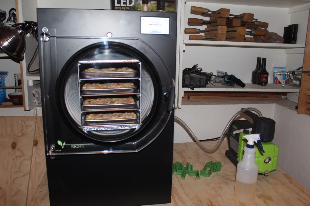 The manual tells you how to do a test run. That’s a bread run with dampened bread to get the manufactured smell out of the chamber. Once that’s done you throw the bread away and you’re ready to start freeze drying.