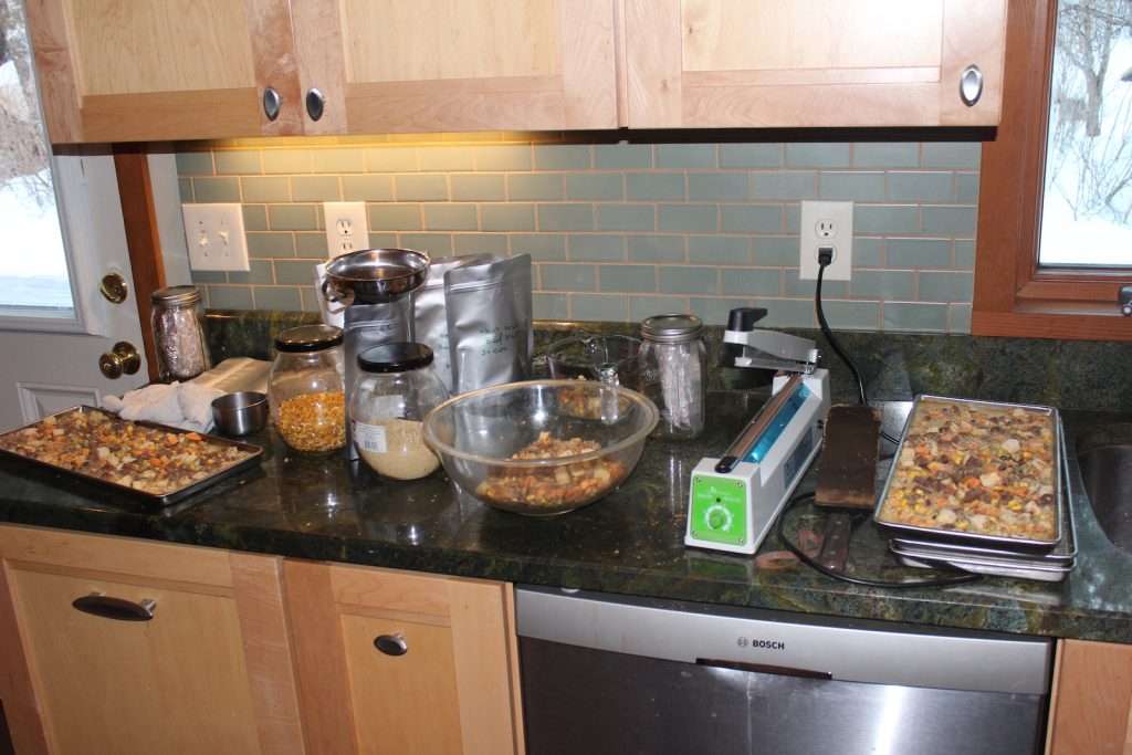 To fill: Have everything ready. Bags or jars, oxygen absorbers, impulse sealer, spatula, medium large bowl, pair of scissors, a canning funnel is handy too.