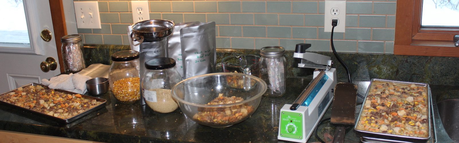 They sell larger and smaller sizes but one quart is my go-to size. One quart bags typically hold a little less than 4 cups because you want to leave some head space when you seal them. Considering most cans of soup hold 14 ounces, with a quart bag of freeze dried beef stew, lentil soup, turkey soup, etc. equals about 2 1/3 cans when it’s reconstituted. More than enough for two people, especially if you add a little rice, quinoa, pasta, or bread from the pantry. Two-quart bags hold enough for four or five people, or you can eat half today/half tomorrow.