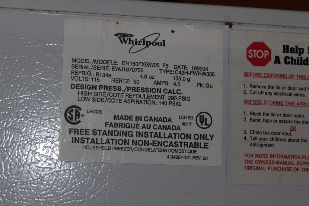 11) Think about what size generator you’d need to run the freezer if the power went out for an extended time. There’s a sticker on the unit that gives voltage and amps. The formula you want when you’re figuring out what wattage you need for a generator to run the freezer is V times A = W. *Note: these motors require four times as much power to start as they do while they’re running. So you want a generator with 4 times the Wattage in the formula above.