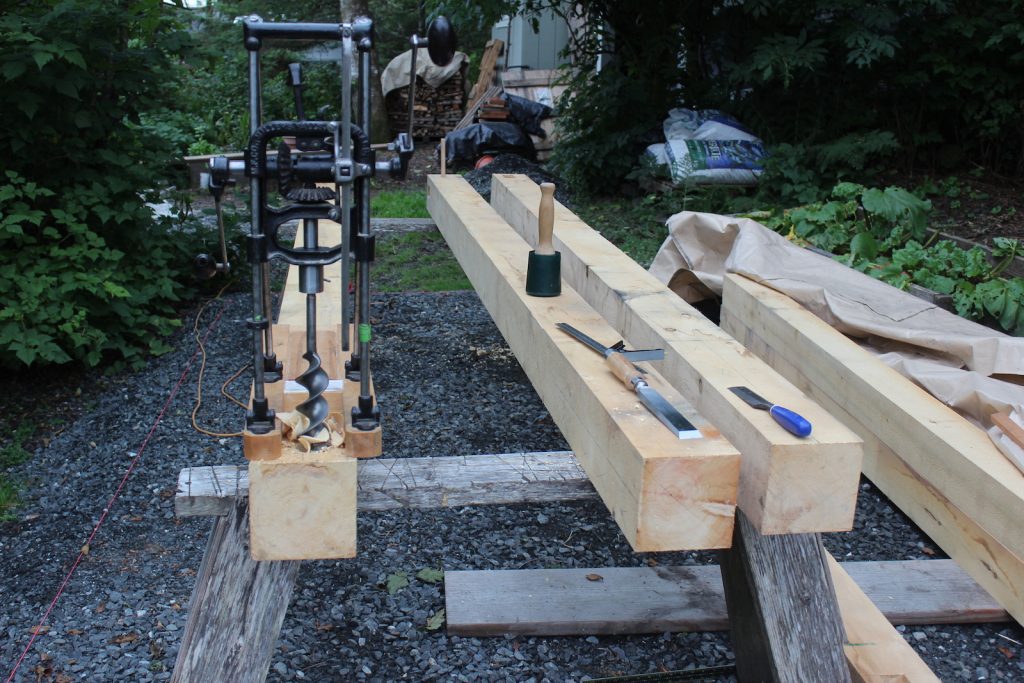Mortising the frame with 1800’s Miller’s Falls boring machine & chisels. Beautiful yellow cedar cut to order from Tenakee Logging, a small, father and son (Gordon and Sterling Chew) sustainable oriented mill here in Southeast Alaska. Great people to work with.