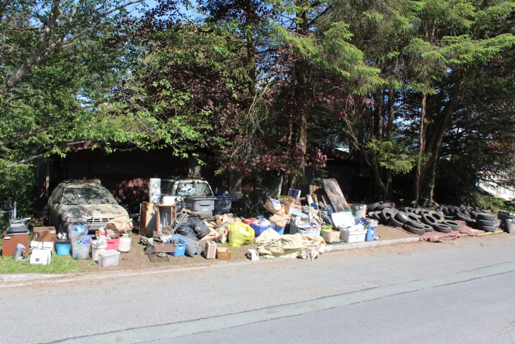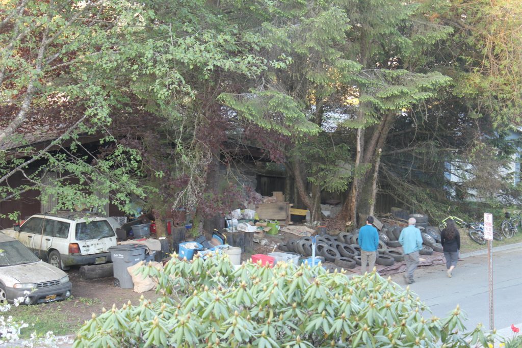 Me: “Now. And another thing, Don. Nothing we put on the street is going back in the yard. Dave’s at risk for losing his house, more than a little because of you. We’re trying to help him, and here you show up making a mess. The party’s over.” He moved the tires.