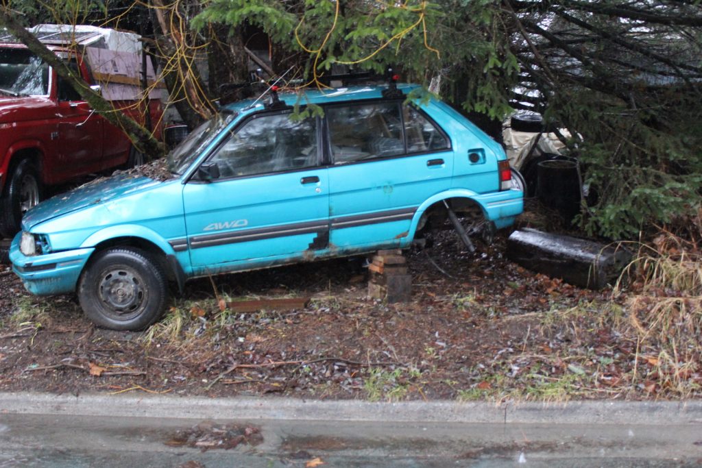 Junk cars can be hard to get rid of. Old Dave always had at least half a dozen cars in his yard, not all of them his. Plus he stored more cars at the harbor parking lots and on side streets around town. When the traffic officer put a ‘This car will be towed in three days” ticket on one, Old Dave would drive a car from his yard down there, leave it, and bring home the one that had been ticketed. By the time he passed away he was down to just a couple cars in the yard but his fellow hoarder Don Roman had brought in several, plus the guy with the camper truck, and left them without asking permission. This included the car he drove in summer which was so crammed with stuff, including rotten food, that there was only room for him to squeeze in to drive it. That particular car became a problem one summer when a bear pushed in the driver’s window to get at the food. Roman’s solution was to tape a garbage bag over the broken window and leave like that. Nice job. My wife went out and spoke sharply to him about that one day. After that he’d look out for her as he drove up, then bolt into the house.