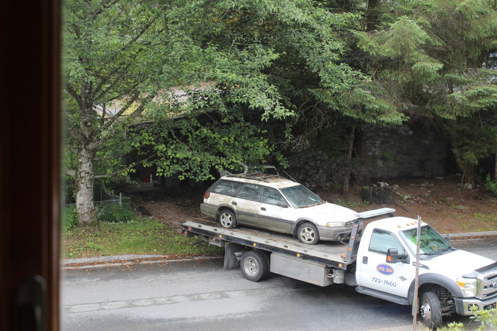 In Alaska, even if it’s your property and someone leaves cars there without your permission, the process of getting rid of them takes months. It involves filing forms with the Department of Motor Vehicles, waiting six months before you can take title, attempting to contact the owner of record within 30 days of removal.* Dave didn’t want to start that process.