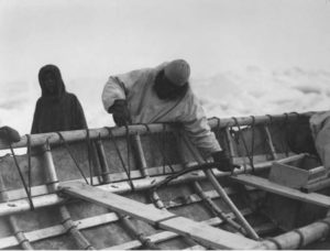 In later days canvas could be substituted when seals were in short supply but canvas wasn’t as safe as seal skin because if temperatures drop and ice starts to form, seal skin is tougher and stands up to ice better. Still, as with all boats, maintenance was a constant.