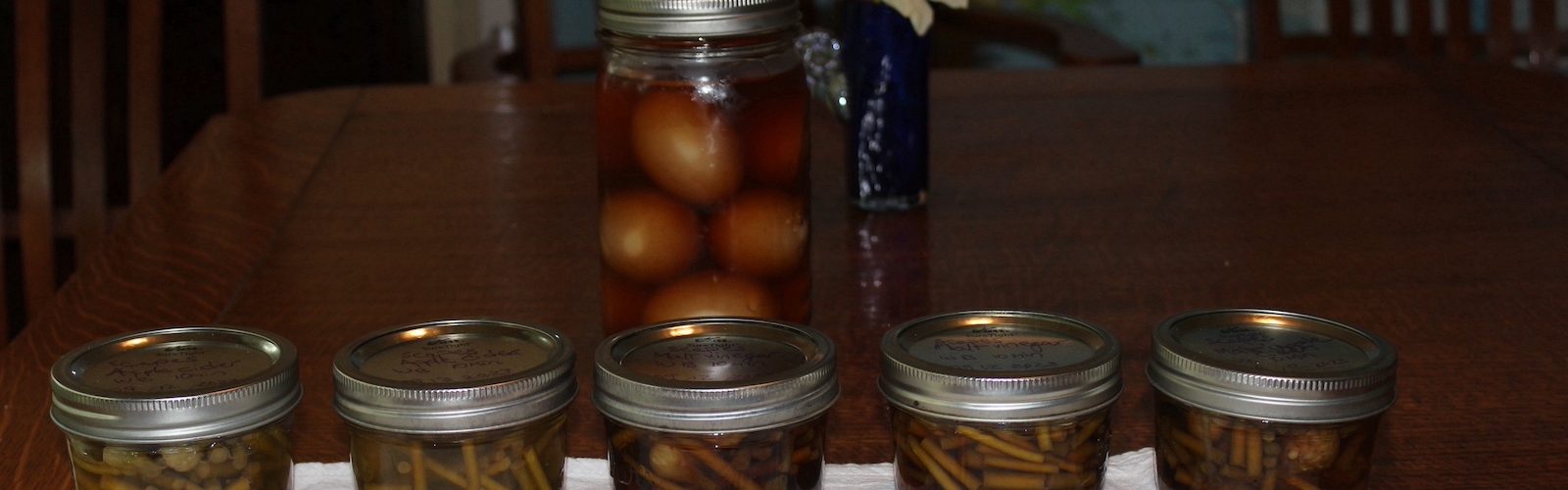 *Use commercial vinegars of 5% acidity. Don’t dilute them unless a proven recipe calls for that. White, cider, or malt vinegars all work but impart different flavors and dark vinegars will color light foods like apples or hard boiled eggs.