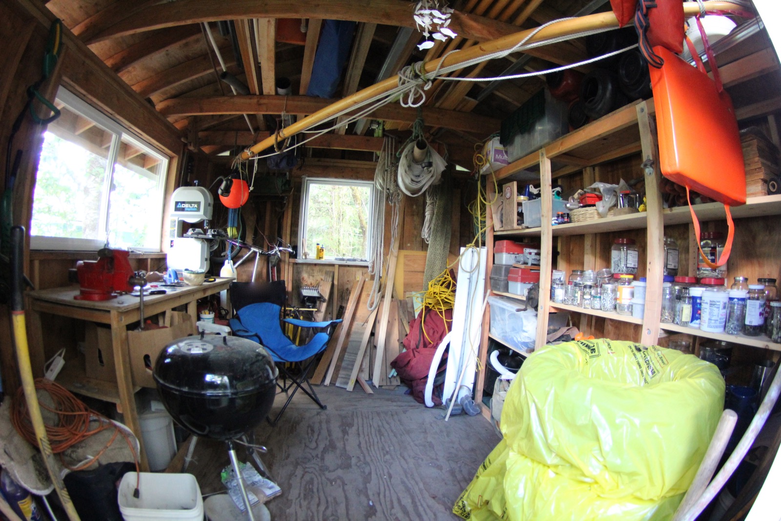 With home made shelves, and rafter storage, a good shed is a clown car. An impossible amount of stuff goes in and out of it all the time. When we did a remodel we just carried the living room: couches, chairs, dining room table, lamps—the whole enchilada—50 steps out to the shed. When it was done, it was 50 steps back in. Year round our goods are where we need them when we want them. We don’t have to drive somewhere to get at the tires, rakes, shovels, oars, boat cushions, bicycles, charcoal grill, tool chests or whatever.