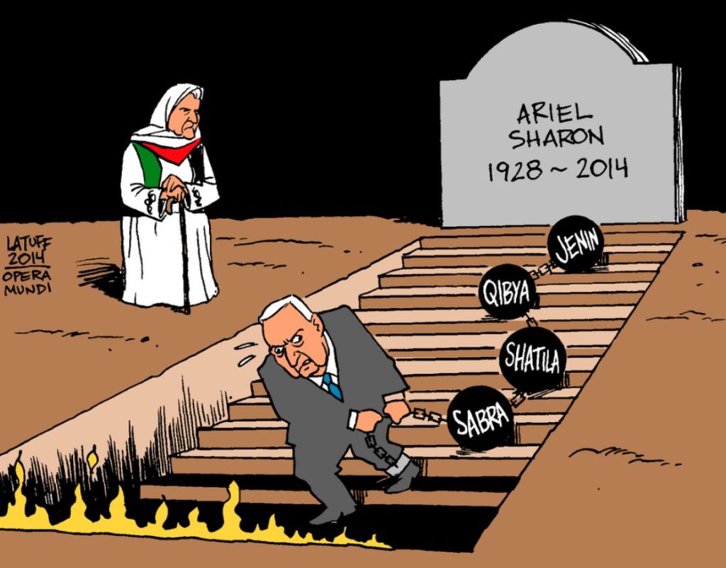 October 14/15, 1953: Quibya Massacre. Jewish terrorist and later Prime Minister of Israel Ariel Sharon (born Ariel Scheinerman to parents who emigrated from the Republic of Georgia to Palestine in 1922.) The narrative will be a template for all Israeli responses to massacres they commit in future.1) deny they were involved 2) minimize 3) claim self-defense 4) play the victim. 5) Call everyone anti-Semites.